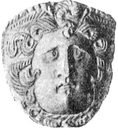 на мелкие части, пифоса; кроме того, здесь найдены в земле: мраморная, сильно поврежденная, головка женщины, с собранными сзади