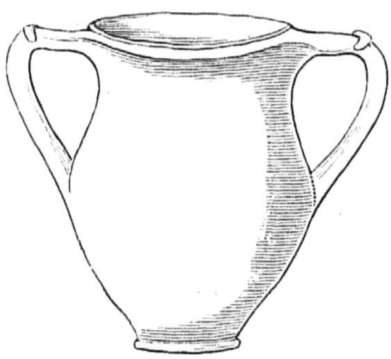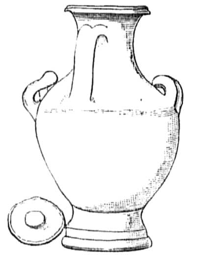 7 глиняных урн в виде кувшинов от 7 до 8 вершк. высоты (5 об одной и 2 о двух ручках); из них 6 были закрыты каждая глиняною крышкою,