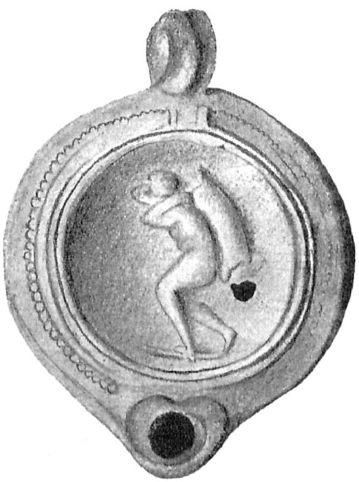 В большей части могил находилась посуда глиняная - кувшины, блюдца, тарелки, миски, вазочки и чашки - и стеклянная - бальзамарии, флаконы и др. Встречалось также много глиняных лампочек, отчасти гладких, отчасти с рельефными изображениями: Гелиоса (см. рис. № 17), мужских фигур (см. рис. № 18), барана, птиц, овцы, кабана, пегаса, оленя, виноградной кисти, звездочки; на одной лампочке находится греческая надпись XPV (см. рис. № 16), на другой латинская CASSI. Наконец во многих могилах найдены, кроме бронзовых херсонесских монет, бронзовые и серебряные монеты босфорские, царские (Котиса II и III) и автономные (пантикапейские, кесарийские, диоскурийские, синопские, амизские, амастрийские), и римские времен Нерона, Веспасиана, Септимия Севера, Каракаллы, Гелиогабала, Александра Севера, Максимина, Гордиана III, Галла Требониана, Галлиена, Клавдия II, Диоклетиана, Максимиана I, Константина Великого, Констанса и Констанция.