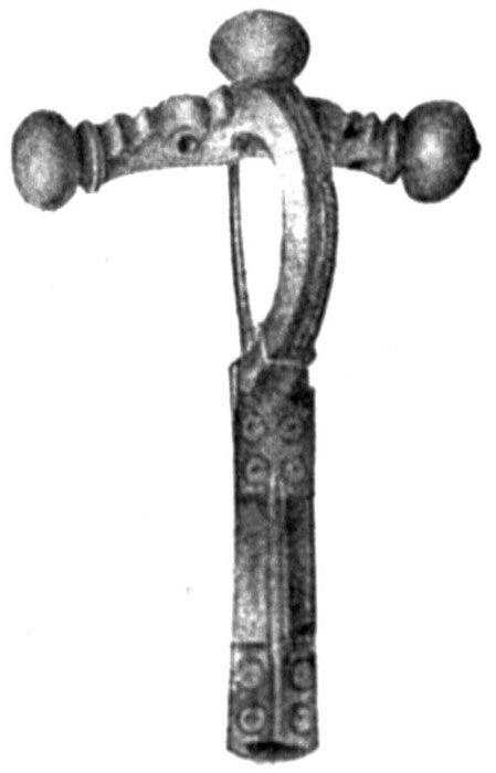 - Bone fork in the form of female figure, of rough workmanship, and br<onze> coin of Chersonesos dated to the II-nd period (Burachkov, Op.cit., pl<ate> XVI, 104).