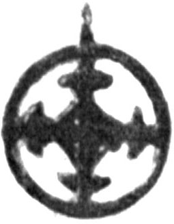 изображением благословляющего святого, с трехстрочною византийскою надписью сверху и с круглым гнездом посередине,