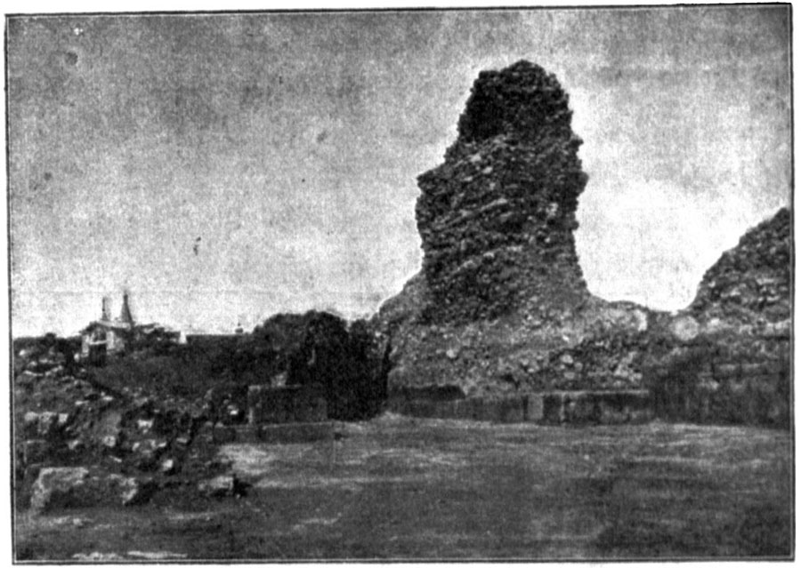 Хотя надпись, гласящая о сооружении железных ворот, найдена впереди башни, в которой также можно предполагать существование ворот или дверей, но, может быть, она занесена сюда случайно и находилась первоначально в воротах главной стены, так как береговая стена, разрушенная почти до основания, не могла существовать в византийскую эпоху. Характер кладки этой стены такой же, как на участке, обнаруженном в 1892-1894 гг. (рис. 226) .