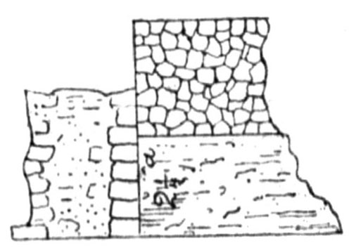 Так как раскопка производилась здесь лишь пробная, то на основании обнаруженного начала разрушенной стены, несомненно,