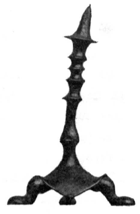 бронз. погнутый подсвечник 8½" высоты, состоящий из 2 частей: основания на 3 ножках и грубо