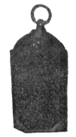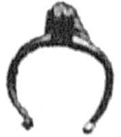 - Гробница земляная с одиночным остовом, при котором лежали 6 свинц. трехлистных кистей с крючочком сверху, и разломанный железный перстень.