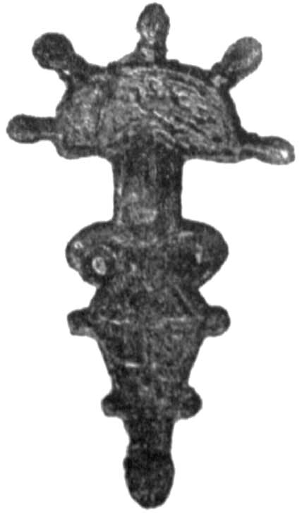 В насыпи этой части некрополя найдены: бронз. фигурка сидящего бородатого мужчины (1½" высоты) с несоразмерно