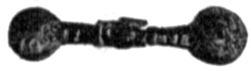 конце большим проволочным крючком, а на толстом конце украшенного двум рысьими головками, к которым прикреплен на шарнире