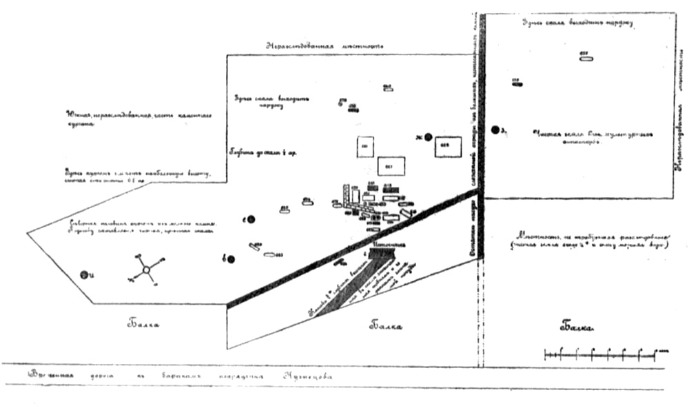 некрополем, почему работы были перенесены в эту местность и начаты в 5 саж. от Ю.-В. угла ограды монастырского скотного двора, от бухты вверх