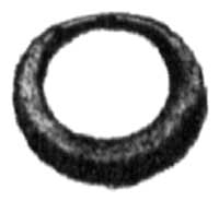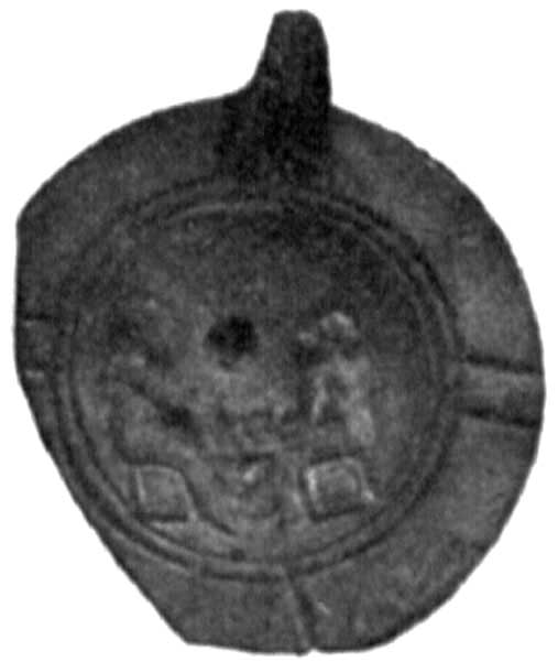 плоский глиняный кружок неправильной формы, 3½" - 4" в диаметре, с двойным выпуклым ободком, в котором помещены рельефные