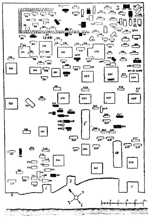 - -655. Четыре земляные гробницы. При одиночных остовах ничего не оказалось.