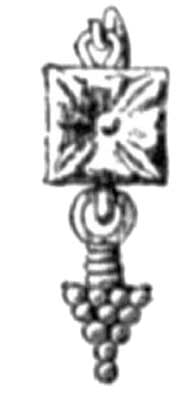 из тонкой зол. бляшки с проволочным колечком, петелькой и подвешенным зол. шариком