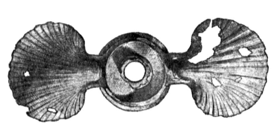 1892 г., стр. 108, рис. 65; бронз. фибула; 6 поясн. бронз. пряжек; 2 бронз. пряжки
