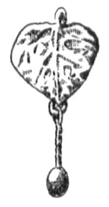 крючок особой формы; в 3 серьгах крючочек примитивным способом продет в дырочку посередине полушария); серьга в виде листика