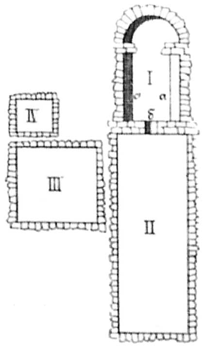 I. Часовня. Алтарная часть была оштукатурена и расписана фресками, остатки которых сохранились на кусках штукатурки,