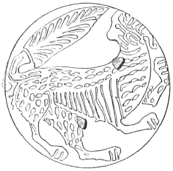 быка), надпись неразборчива; бронз. монета Пантикапея (Бур., табл. XX, 70); бронз. головка львицы, гладко обрезанная
