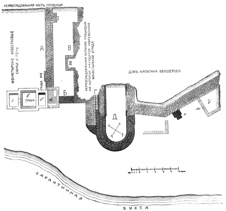 I. Раскопки на берегу Карантинной бухты между монастырской известковой печью и домом капитана Белозерова