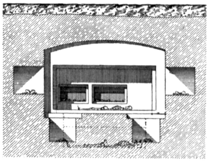 - Земляная разграбленная гробница, помещавшаяся наполовину над катакомбой 835-й.
