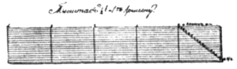 в гробах, судя по сохранившимся на своих местах большим желез. четырехгранным костылям с кусочками при них от деревянных досок. Расследование начато с правой стороны, от остова, лежавшего головой