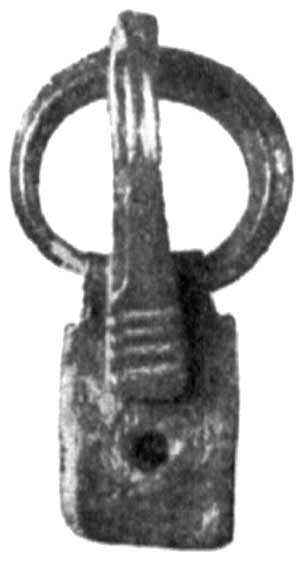 в последней катакомбе найдена еще одна бронз. поврежденная серьга, в виде небольшого крана, подвешенного к кольцу