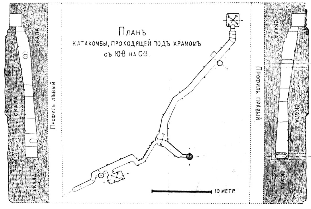 склепы, которые оказались расположенными под храмом с восточной, северной и южной его сторон, в христианское время снова употреблялись для погребений.