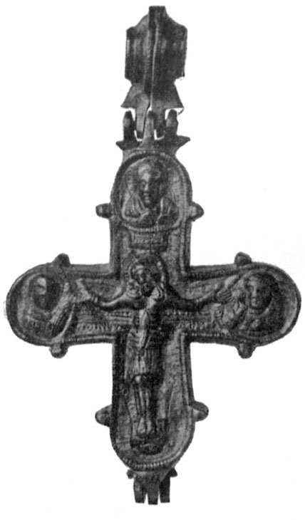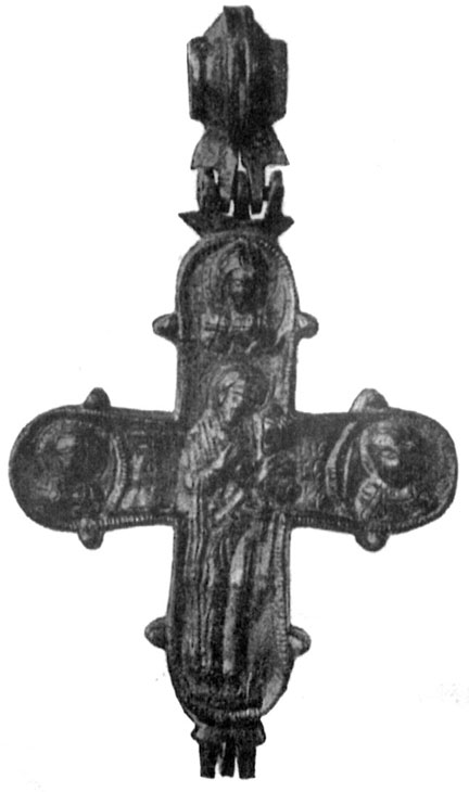 , составлявший, вероятно, часть оклада евангелия. Заслуживает внимания также большой медный энколпион