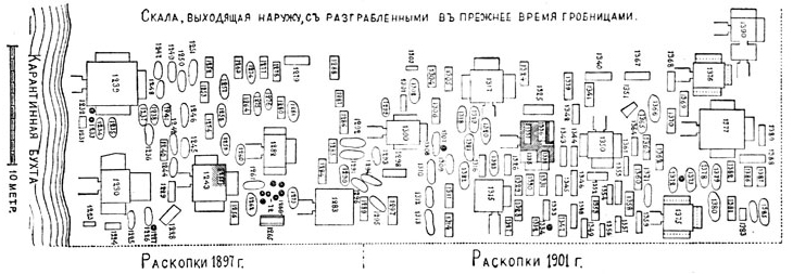Раскопки некрополя у Карантинной бухты производились на двух участках, из коих первый