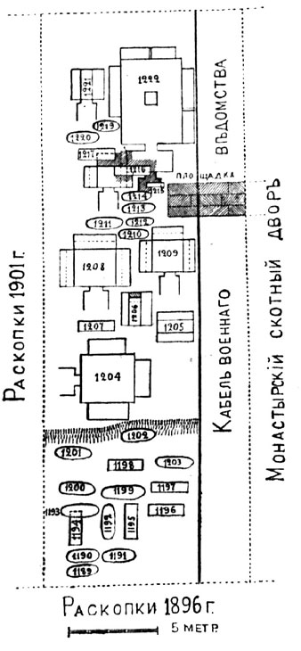 1. Раскопки храма и окружающих его построек у 1-го монастырского огорода