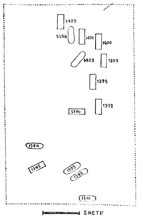 — погребения №№1223-1390. Кроме того, была расследована местность по левую сторону военного шоссе (считая от