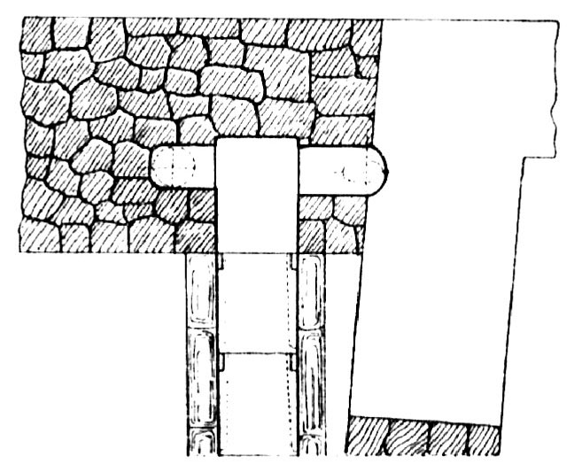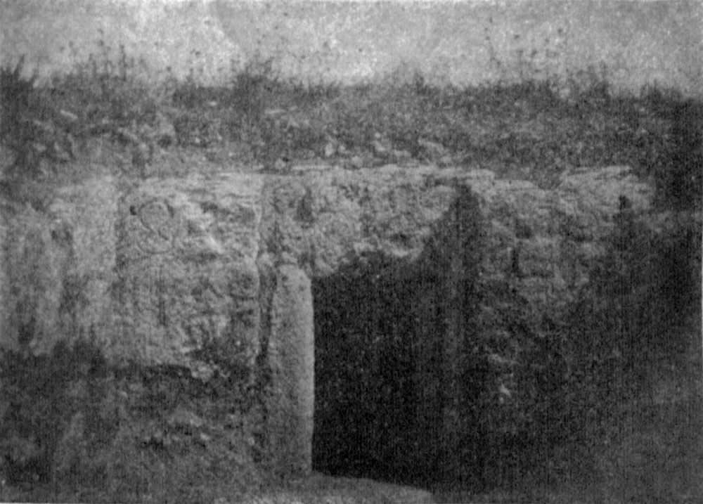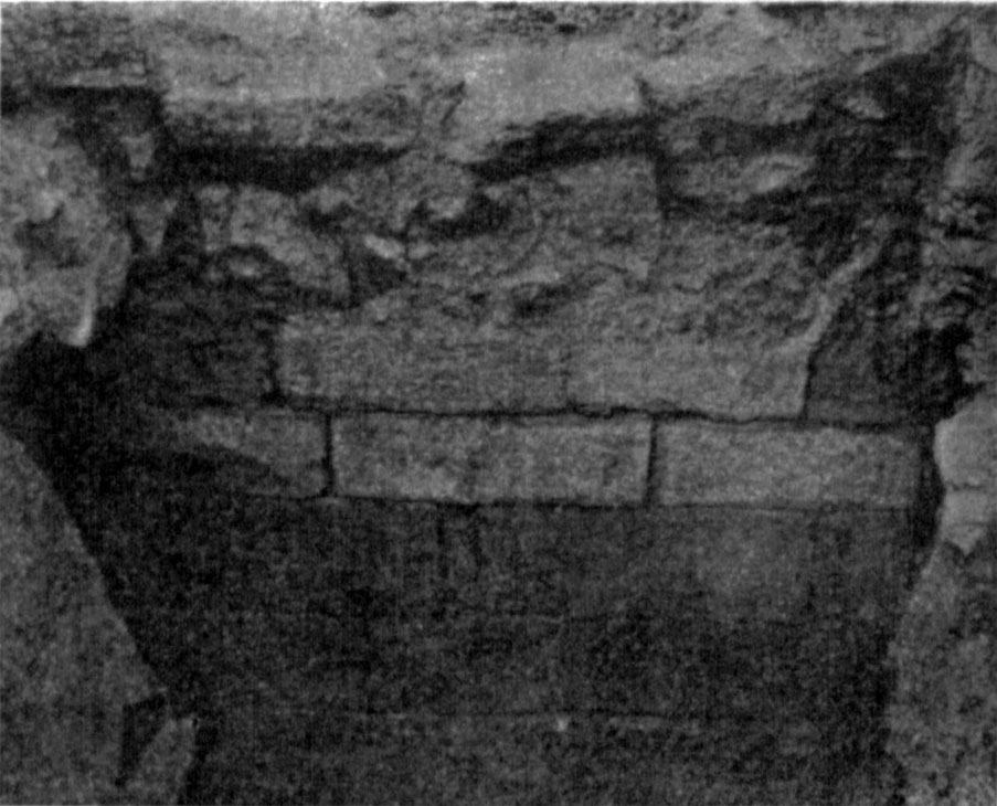 низким туннелем проходит сквозь стену А. Под главным каналом ч, у восточного конца стены А оказалась сложенная в виде уступчатой пирамидки гробница ц, подобная гробнице, открытой