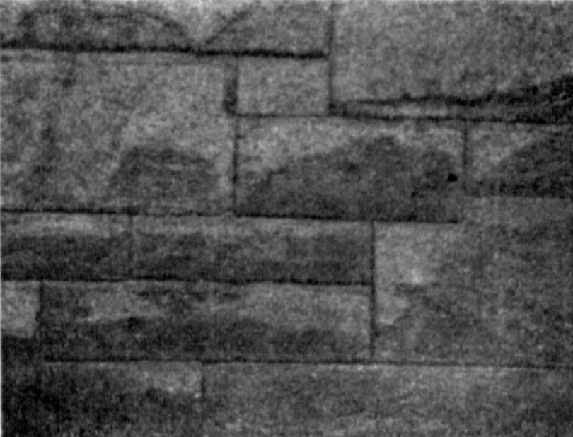 Часть стены с сохранившейся облицовкою, которая была обращена во внутрь города, обнаружена далее к С. за апсидой храма В (на плане А2). Как соединялись части стены А1 и А2, установить невозможно. Древняя стена продолжается далее за оградой храма В, где у нее сохранилась облицовка также только со стороны города, и поворачивает на З. под углом 135° (на плане А3). Далее под византийскими постройками древняя стена нигде не сохранилась. Она выступает снова в северной части раскопок, за монастырской кухней и трапезной (А4) Здесь сохранилась частью облицовка внутренней стороны стены. Еще остаток древней городской стены сохранился у византийского помещения №70 и к С.-З. от него (А5—А6). И здесь сохранилась лишь часть внутренней, обращенной к городу, облицовки стены. Мимо древней стены А5—А6 проходила улица, которую на Ю.-В. пересекала под прямым углом другая. Обе эти улицы оставались и в последующие времена. Наконец, остатки древней городской стены обнаружены в позднейшей городской стене. Раскопки до скалы у стены А выяснили, что стена эта служила всем трем эпохам Херсонеса. Позднейшие эпохи лишь усиливали древнейшую стену. На в. конце стены сохранилась прекрасная облицовка с городской стороны (рис. 27) . С В. городская стена идет к круглой башне, основа которой также принадлежит древней греческой эпохе. Позднее башня и прилегающий к ней участок стены были усилены поясом из больших гладко тесаных камней (рис. 28) . В каком отношении находится круглая башня в стене А к остаткам стены А1 —А6, остается невыясненным, так как участок, прилегающий к круглой башне, пока не может быть, вследствие застроенности, расследован вполне. Пространство, прилегавшее непосредственно к древней стене А, не было застроено, и здесь проходила улица. Посредине ее был главный водосточный