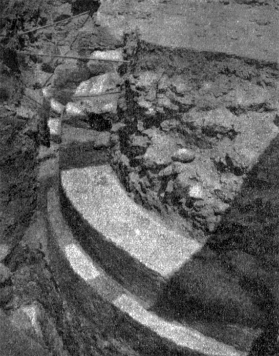 в и б, указанные выше. Пол здания местами был каменный; интересна одна плита со сделанным в ней круглым углублением и тремя дырочками, через которые должна была уходить