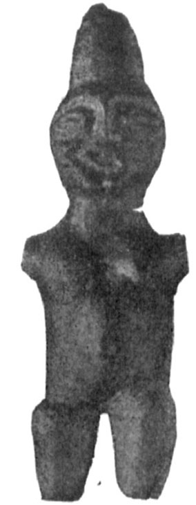 И. Арх. Ком., в. 16, стр. 114), бронзовые статуэтки нагого мужчины, вероятно, с жезлом в левой руки, нагой женщины (очень уродливой)