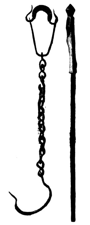 , другие бронзовые пряжки, фибулы, рыболовные крючки, ключи, весовые знаки, монеты, кресты, наконечники копья и стрел, массивный крюк цепи для подвешивания лампады, свинцовая византийская печать, свинцовая